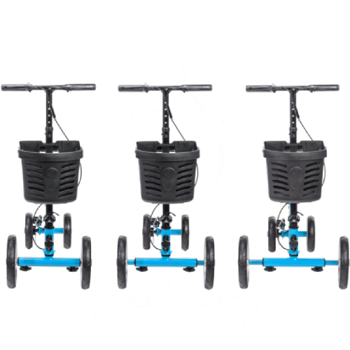 The Nitro Knee Walker offers users recovering from a below-the-knee injury the ability to remain mobile and glide through their daily activities in an all-new sleek design. Offered in two vibrant colors, this patented design features width expanding front axels to provide the user with adjustability and support to meet desired turning radius when navigating in different indoor and outdoor settings. The ergonomic design of the adjustable knee pad provides the necessary comfort and elevation to the injured leg while the adjustable handlebar also accommodates to user preference. The lightweight frame safely encloses the brake cable inside to enhance its modern design and the foldable feature makes it convenient for storage and transport. |